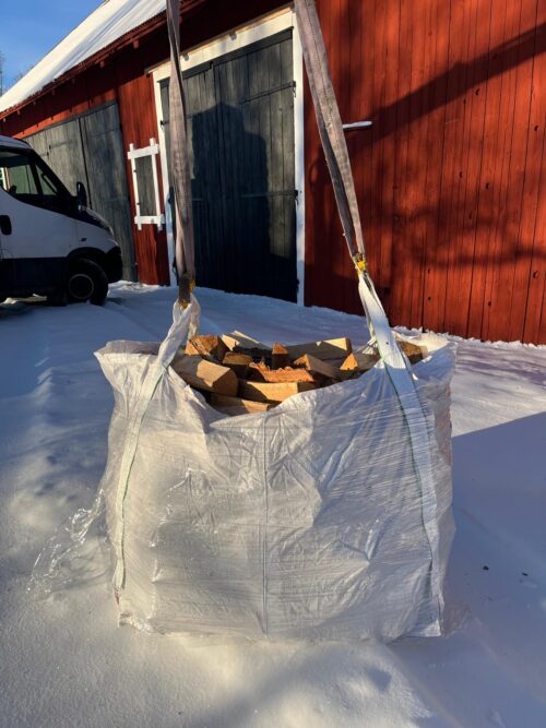 Torkad björkved i storsäck, totalt 1 m3 stjälpt ved. Veden har den absolut högsta kvalitet, så den är lätt att tända, brinner bra med högt värmevärde. Veden är torr och skyddad under hela leveranskedjan från torkningsprocess till leverans hem till dig. De är väl packade och är lätta att hantera. Du kan behålla veden i säcken som en liten vedbod eller så staplar du i din egen vedbod/lager. Säcken leverans av fraktbolaget Skärgårda, se Skärgårda – Hemleveranser i Stockholms skärgård.